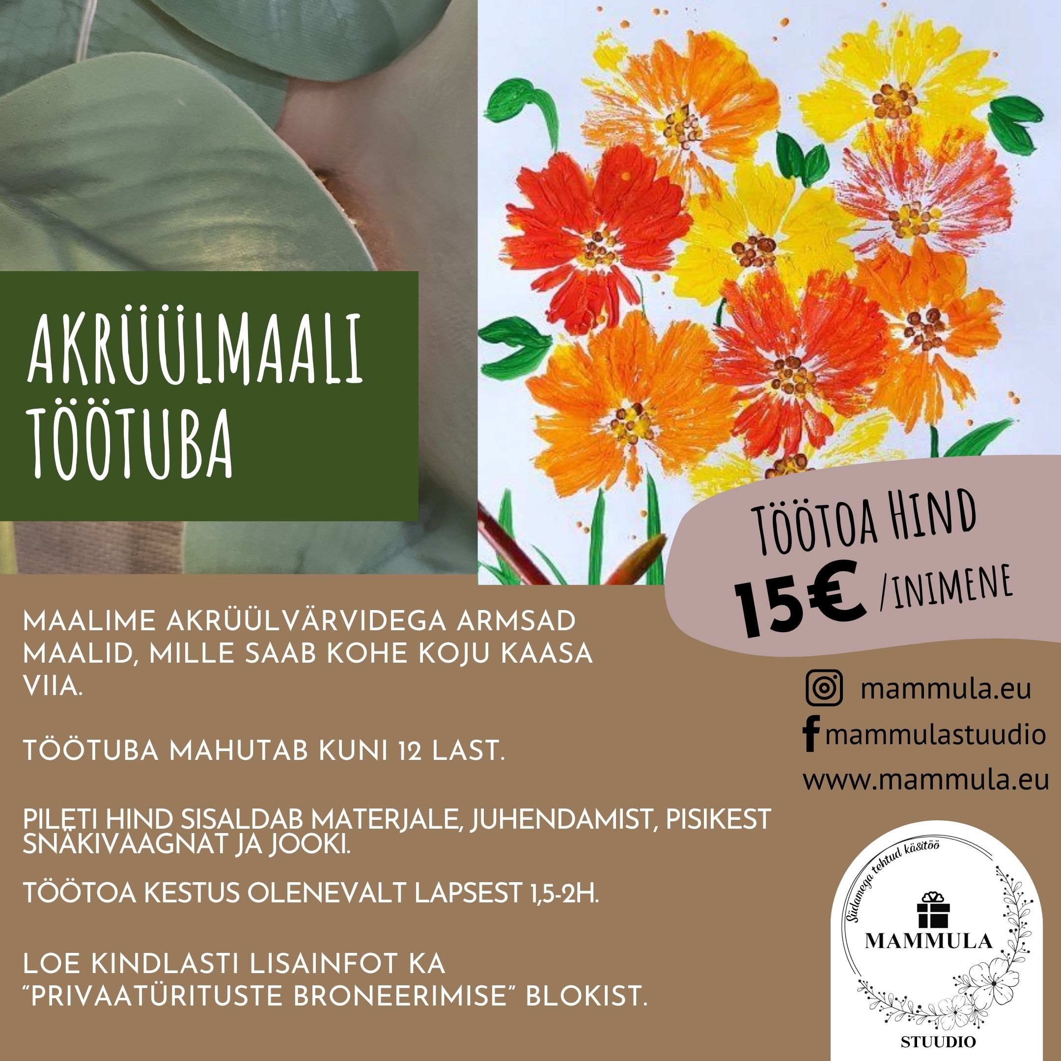 🥰16+eluaastat- lisaks laste töötubadele võib sellele vanusegrupile broneerida ka täiskasvanutele mõeldud töötubasid.